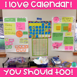 I'm writing today about one of my favorite parts of my daily schedule- Calendar!! It is so much more than just days of the week and months of the year; I am able to pack so much math into Calendar time, and it's a huge benefit for my students and their learning!